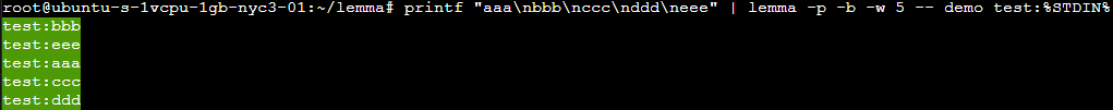 printf "aaa\nbbb\nccc\nddd\neee" | lemma -p -b -w 5 -- demo test:%STDIN%