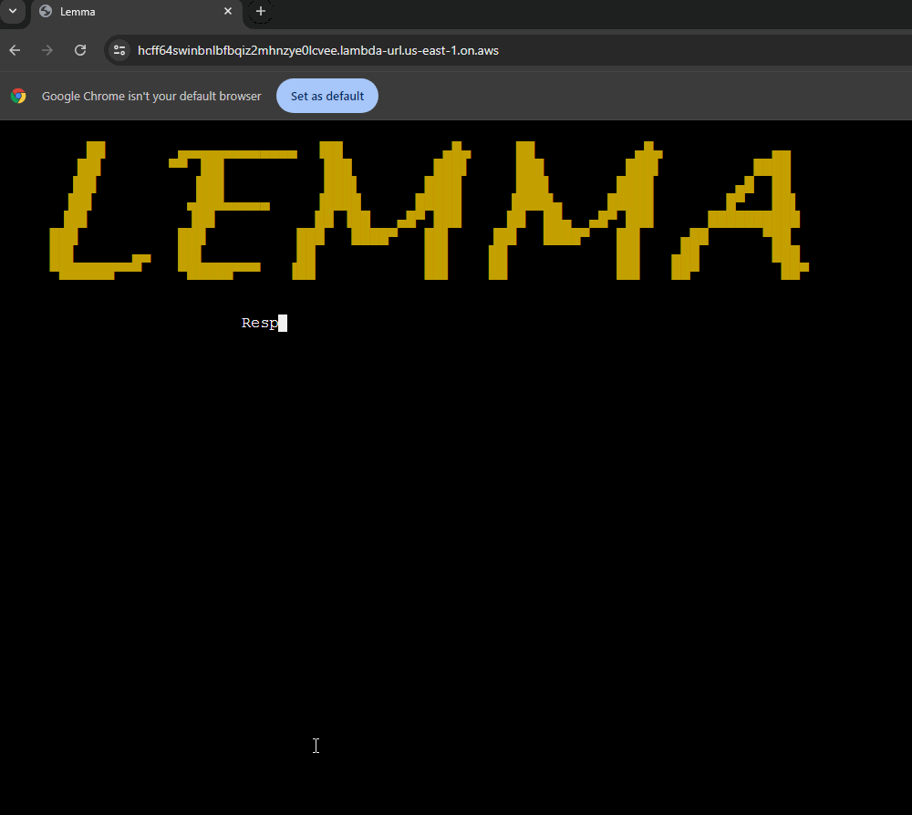 Lemma's web client is packaged inside the Lemma function itself for easy access. It simply is just 1 html file and 1 javascript file (Also importing xterm.js from CDN). To access it simply just copy and paste your lemma lambda url/key into your chrome web browser and hit enter. For usage details just type the help command.